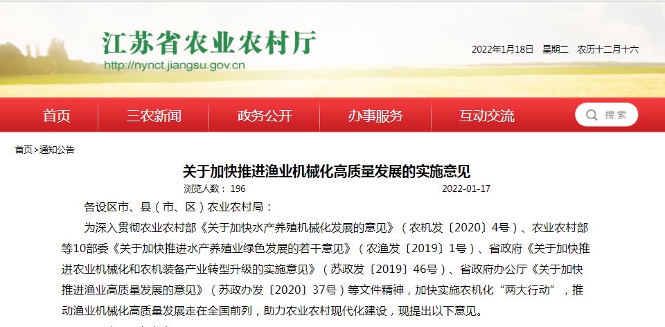 各設(shè)區(qū)市、縣(市、區(qū))農(nóng)業(yè)農(nóng)村局:為深入貫徹農(nóng)業(yè)農(nóng)村部《關(guān)于加快水產(chǎn)養(yǎng)殖機(jī)械化發(fā)展的意見》(農(nóng)機(jī)發(fā)〔2020〕4號)、農(nóng)業(yè)農(nóng)村部等10部委《關(guān)于加快推進(jìn)水產(chǎn)養(yǎng)殖......