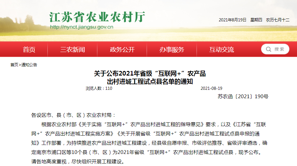 各設(shè)區(qū)市、縣(市、區(qū))農(nóng)業(yè)農(nóng)村局:根據(jù)農(nóng)業(yè)農(nóng)村部《關(guān)于實施“互聯(lián)網(wǎng)+”農(nóng)產(chǎn)品出村進(jìn)城工程的指導(dǎo)意見》要求,以及《江蘇省“互聯(lián)網(wǎng)+”農(nóng)產(chǎn)品出村進(jìn)城工程實施方案》《......