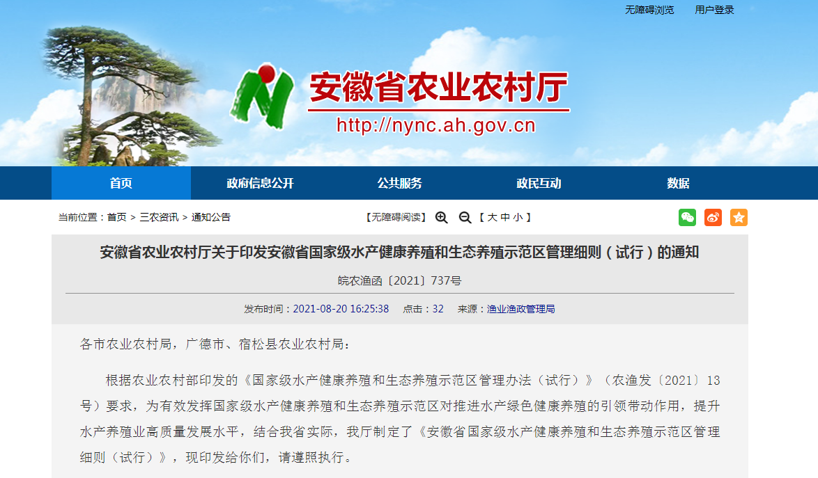 各市農(nóng)業(yè)農(nóng)村局,廣德市、宿松縣農(nóng)業(yè)農(nóng)村局:根據(jù)農(nóng)業(yè)農(nóng)村部印發(fā)的《國家級水產(chǎn)健康養(yǎng)殖和生態(tài)養(yǎng)殖示范區(qū)管理辦法(試行)》(農(nóng)漁發(fā)〔2021〕13號)要求,為有效發(fā)揮......