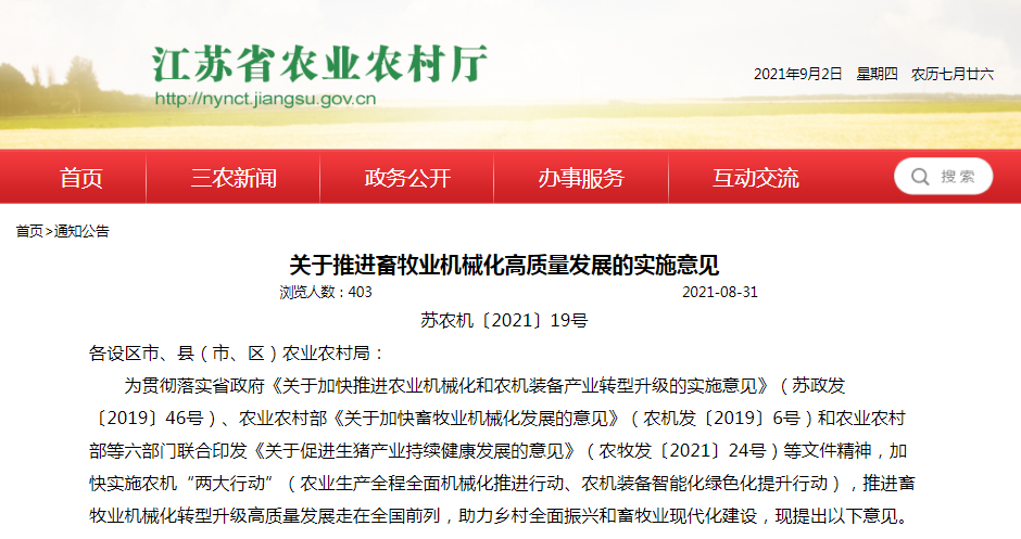 各設(shè)區(qū)市、縣(市、區(qū))農(nóng)業(yè)農(nóng)村局:為貫徹落實省政府《關(guān)于加快推進(jìn)農(nóng)業(yè)機(jī)械化和農(nóng)機(jī)裝備產(chǎn)業(yè)轉(zhuǎn)型升級的實施意見》(蘇政發(fā)〔2019〕46號)、農(nóng)業(yè)農(nóng)村部《關(guān)于加快畜......