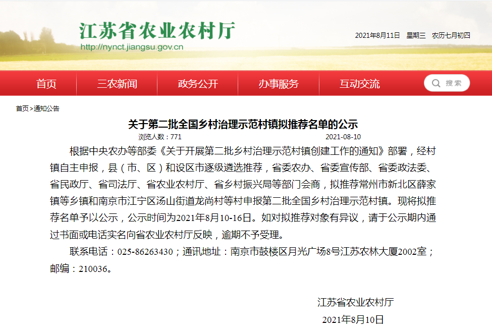 根據(jù)中央農(nóng)辦等部委《關(guān)于開(kāi)展第二批鄉(xiāng)村治理示范村鎮(zhèn)創(chuàng)建工作的通知》部署,經(jīng)村鎮(zhèn)自主申報(bào),縣(市、區(qū))和設(shè)區(qū)市逐級(jí)遴選推薦,省委農(nóng)辦、省委宣傳部、省委政法委、省民......