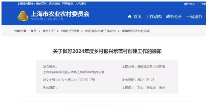 各涉農區實施鄉村振興戰略工作領導小組辦公室:根據《關于做好2024年度鄉村振興示范村申報工作的通知》(滬鄉村振興辦〔2024〕3號)要求,經區申報、市評審,推薦......