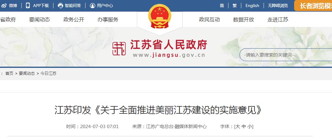 中共江蘇省委 江蘇省人民政府關于全面推進美麗江蘇建設的實施意見(2024年5月30日)“強富美高”新江蘇是習近平總書記親自為我省擘畫的宏偉藍圖,建設美麗江蘇是......