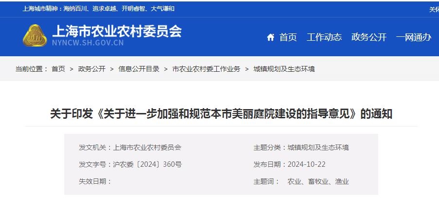 各涉農區農業農村委:??為進一步加強和規范本市美麗庭院建設工作,經市領導同意,我委制定了《關于進一步加強和規范本市美麗庭院建設的指導意見》。現印發你們,請認真貫......