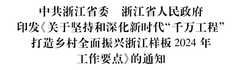 各市、縣(市、區)黨委和人民政府,省直屬各單位: 現將《關于堅持和深化新時代“千萬工程”打造鄉村全面振興浙江樣板2024年工作要點》印發給你們,請結合實際認真......