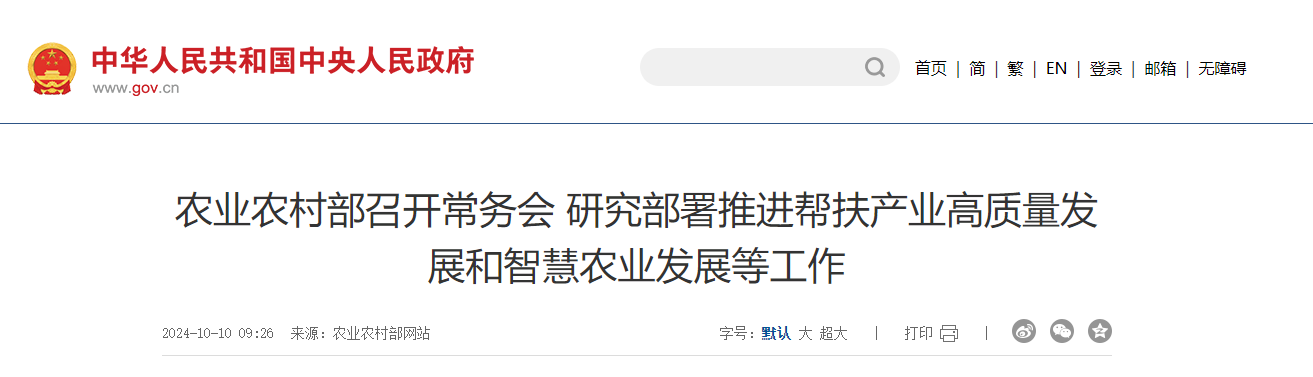 10月9日,農(nóng)業(yè)農(nóng)村部黨組書記、部長韓俊主持召開部常務(wù)會(huì)議,審議并原則通過《農(nóng)業(yè)農(nóng)村部關(guān)于落實(shí)“四個(gè)一批”要求扎實(shí)推進(jìn)幫扶產(chǎn)業(yè)高質(zhì)量發(fā)展的指導(dǎo)意見(送審稿)》《......
