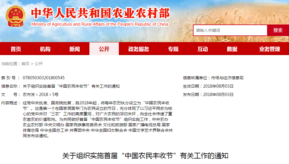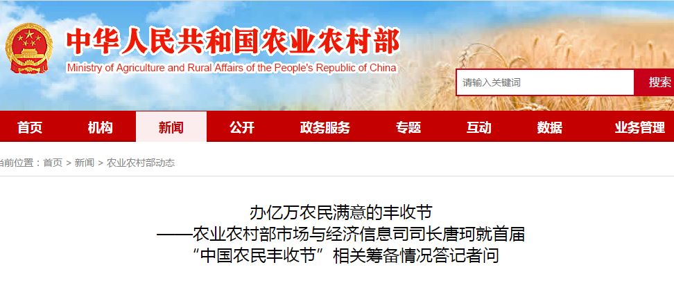 “中國農(nóng)民豐收節(jié)”官方網(wǎng)站(以下簡稱網(wǎng)站)于8月23日正式上線運行! ...