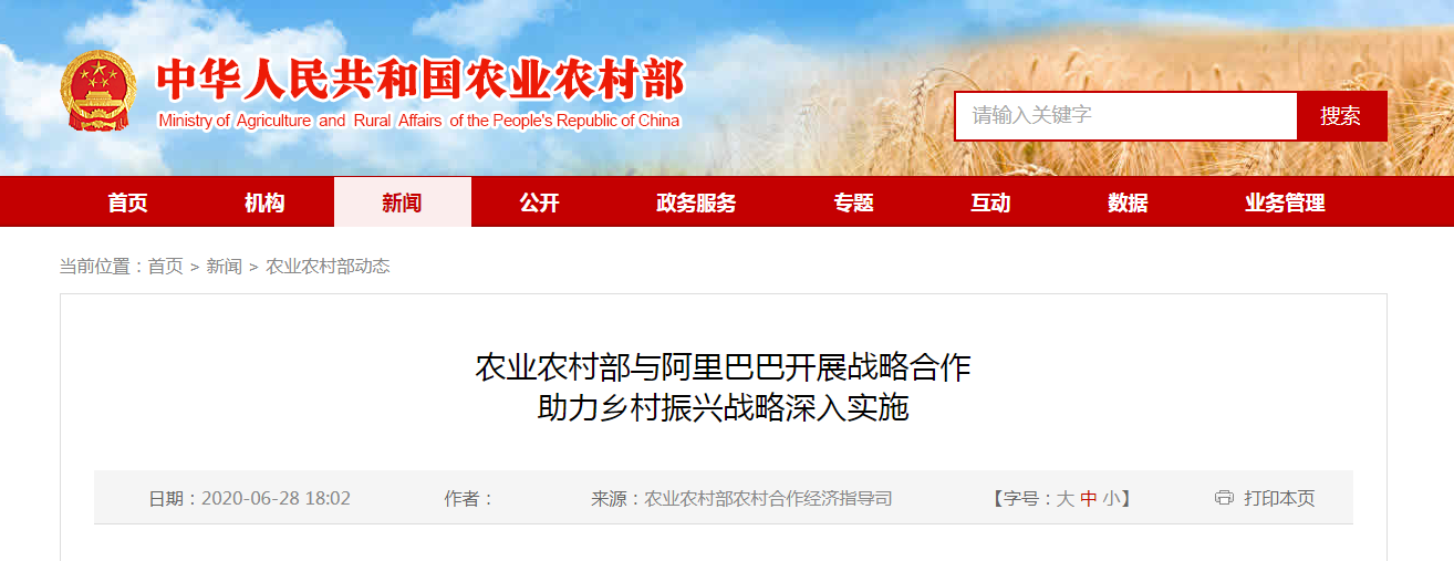 近日,農(nóng)業(yè)農(nóng)村部農(nóng)村合作經(jīng)濟(jì)指導(dǎo)司與阿里巴巴集團(tuán)簽署戰(zhàn)略合作協(xié)議,共同推進(jìn)數(shù)字化在提高鄉(xiāng)村治理水平、壯大農(nóng)民合作社隊(duì)伍、提升農(nóng)業(yè)社會化服務(wù)能力方面的應(yīng)用與發(fā)展,......