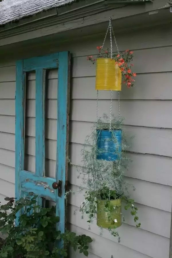 一些什么麻布袋、環(huán)保袋之類的,種上花花草草,把它們一個一個像燈籠那樣掛起來。這樣,你可以連花盆也不需要了。