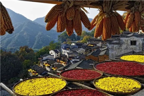 游客來篁嶺可以看曬秋,拍曬秋也可以住下和村民們一起在田園采摘,在曬匾里曬出自己的“圖騰”,在古民居的回廊上體驗“朝曬暮收”的農(nóng)家樂趣。