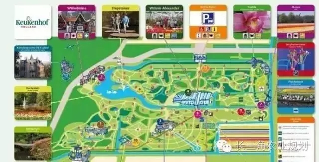 荷蘭庫肯霍夫公園在15世紀是賈各巴女伯爵的狩獵場,因園內(nèi)種植烹調(diào)用蔬果而得名,后由左加特父子設(shè)計景觀,直到1949年才成形為郁金香花園。目前它已經(jīng)成為世界上最大的郁金香公園、世界上被拍攝最多的地點、荷蘭最受歡迎的景點,并數(shù)次榮獲歐洲“最具價值旅游景點”獎。60多年以來,公園年接待游客80多萬人次,累積接待近5000萬游客。