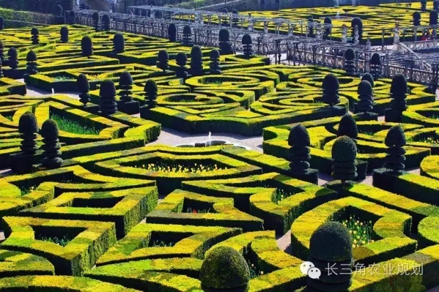模紋綠籬的使用起源于公元5世紀的古羅馬。凡是由萌蘗力極強的灌木或小喬木,以近距離的株行距密植而形成的緊密結(jié)構(gòu)的規(guī)則的種植形式,都被稱之為綠籬或者綠墻。在造園過程中經(jīng)過精心布置與整形修剪最后形成精美的幾何圖案式效果的綠籬統(tǒng)稱為模紋圖案式綠籬,簡稱為模紋綠籬。
