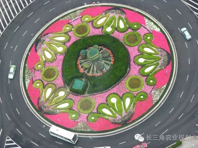 模紋的概念不局限于規(guī)則的植物配置運用,還包含兩個意思:模紋可以指景觀設計中規(guī)則式的模紋花壇,也可以指自然式的植物模紋、植物的模紋色彩。因為圖案在景觀設計各要素中都被運用得淋漓盡致,所以模紋也可包括植物模紋藝術(shù)、地形模紋藝術(shù)、建筑模紋藝術(shù)、道路鋪裝模紋藝術(shù)等。由此,對農(nóng)業(yè)景觀設計中的模紋概念可以歸納擴展為:農(nóng)業(yè)景觀設計中運用材料、色彩、植物、文字、形式美法則等手段在農(nóng)田大棚、展館活動、農(nóng)副產(chǎn)品等設計要素中構(gòu)成的各式圖案,以營造創(chuàng)新的農(nóng)業(yè)景觀效果。