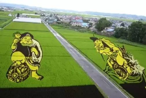 日本的稻田藝術(shù)是通過插播、套種等方式將稻田在大地上呈現(xiàn)出預(yù)先設(shè)計好的圖案,在作物成長不同階段,顏色不斷變化,形成四時之景不同的景象。其創(chuàng)作題材豐富,囊括風(fēng)景、人物、動漫等。