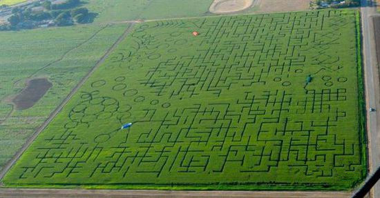 美國玉米種植面積大,有著自然條件優(yōu)越的玉米生產(chǎn)帶。而美國人在玉米田中創(chuàng)造出了一種娛樂方式——玉米迷宮。在種植玉米之前,先設(shè)計好一個迷宮圖案,按圖案種植玉米,等待玉米長成后,變?yōu)橐粋€玉米迷宮,供游人娛樂參與。目前,玉米迷宮已經(jīng)發(fā)展到加拿大、意大利、英國等國家。