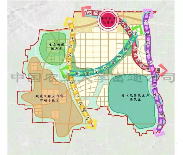 由中國(guó)農(nóng)業(yè)大學(xué)富通公司(簡(jiǎn)稱中農(nóng)富通)規(guī)劃設(shè)計(jì)的“陜西省西咸新區(qū)灃西新城田園小鎮(zhèn)和都市農(nóng)業(yè)示范區(qū)”是農(nóng)業(yè)綜合體模式的代表,孕育著“現(xiàn)代田園城市”的新范式。整體規(guī)劃設(shè)計(jì)用創(chuàng)新思維將農(nóng)業(yè)和城鎮(zhèn)建設(shè)相結(jié)合,以各新城中心功能區(qū)為核心,以追憶西周文化為魂,以展示自然之美為線,集生態(tài)恢復(fù)、都市農(nóng)業(yè)體驗(yàn)、文化休閑、娛樂(lè)旅游等多功能于一體,以再現(xiàn)新城生態(tài)和文化記憶為目標(biāo)的,布局特色農(nóng)業(yè)、文化旅游、生態(tài)休閑等特色主題小鎮(zhèn)及莊園經(jīng)濟(jì)型小鎮(zhèn)對(duì)居住環(huán)境進(jìn)行點(diǎn)綴,構(gòu)建環(huán)境優(yōu)美、文化多樣、城鄉(xiāng)繁榮、產(chǎn)業(yè)發(fā)達(dá)、獨(dú)具魅力的現(xiàn)代田園社區(qū),形成“傾城之鏈,盈彩田園,絢麗畫卷。通過(guò)農(nóng)業(yè)村鎮(zhèn)一體化規(guī)劃,打造都市田園小鎮(zhèn)。實(shí)現(xiàn)產(chǎn)業(yè)、文化、生活一體化,打造都市農(nóng)業(yè)和城市建設(shè)高度融合的新區(qū)。