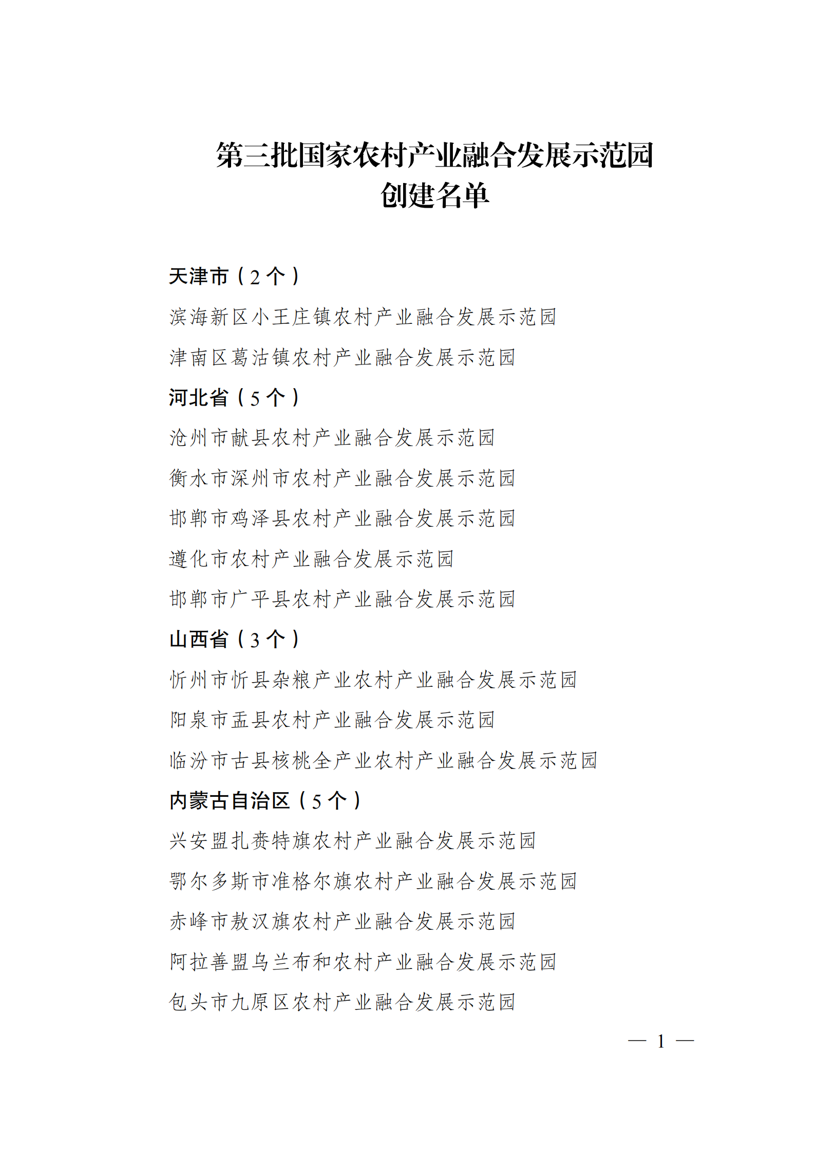 關(guān)于印發(fā)第三批國(guó)家農(nóng)村產(chǎn)業(yè)融合發(fā)展示范園創(chuàng)建名單的通知