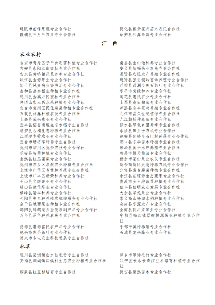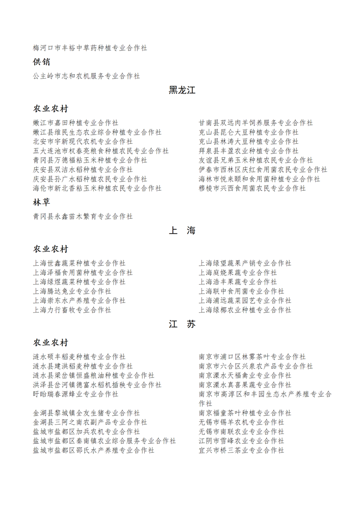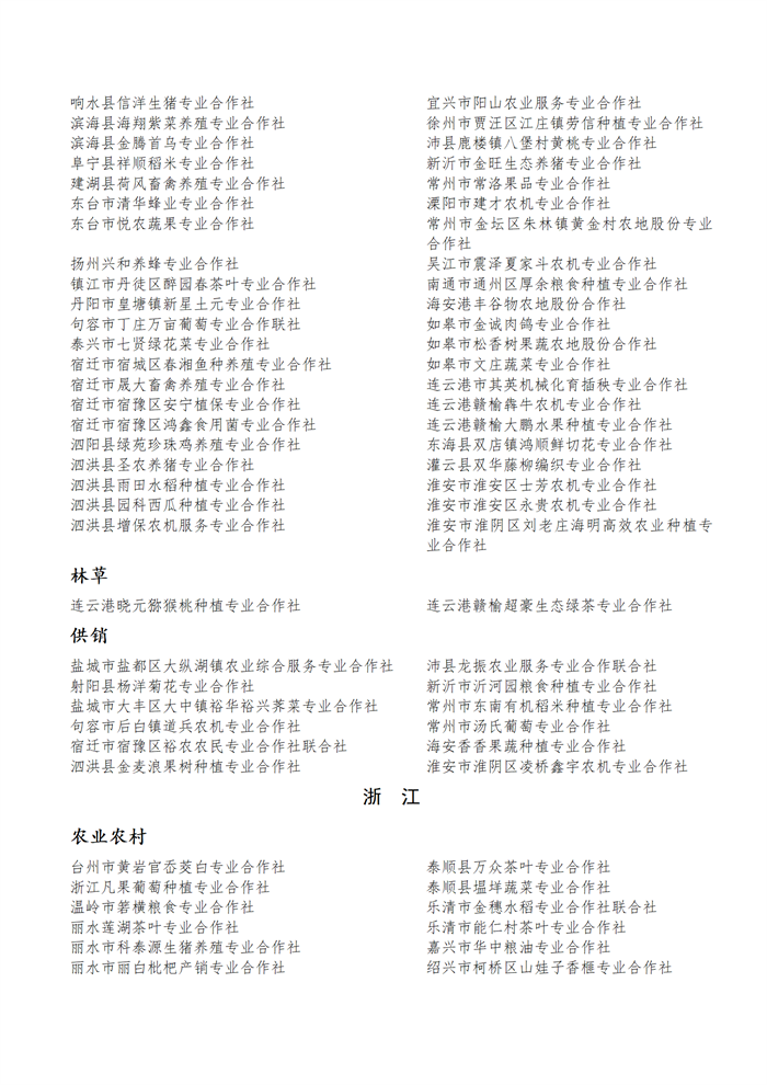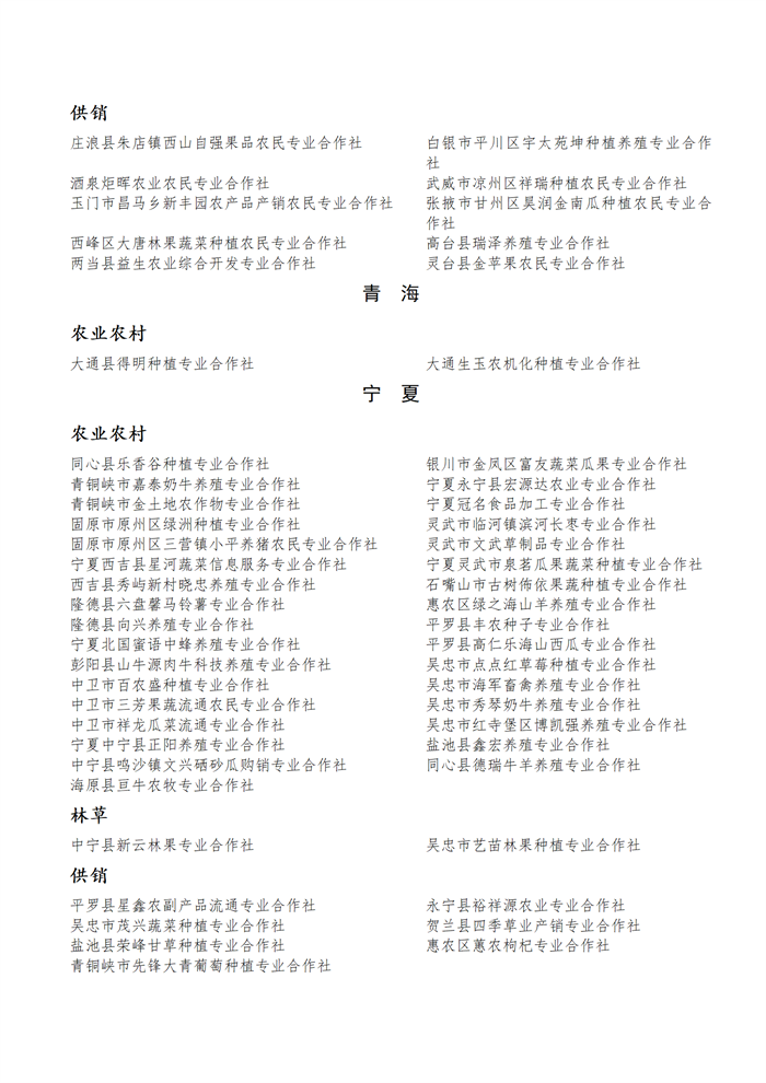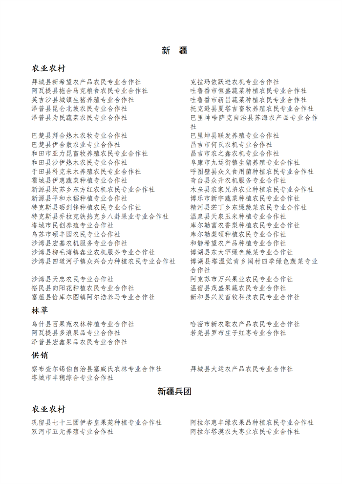 國家農(nóng)民合作社示范社公示名單.docx