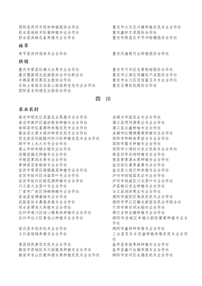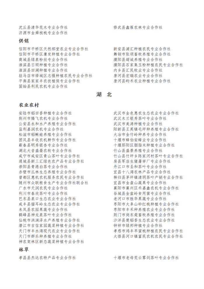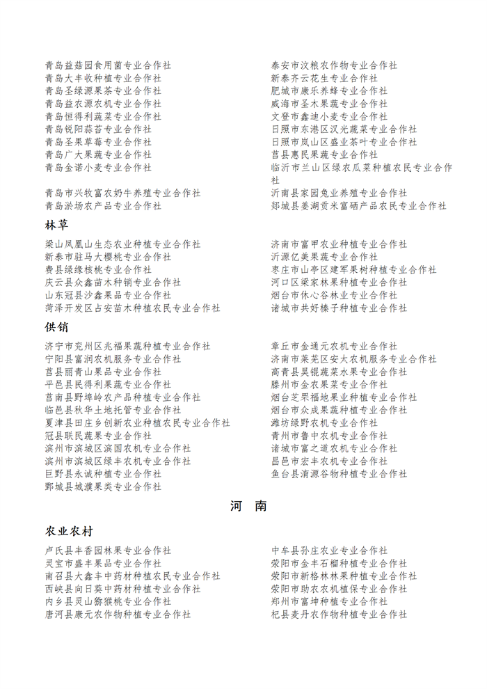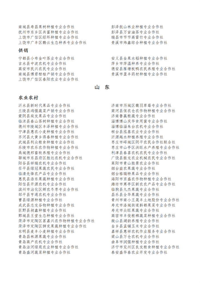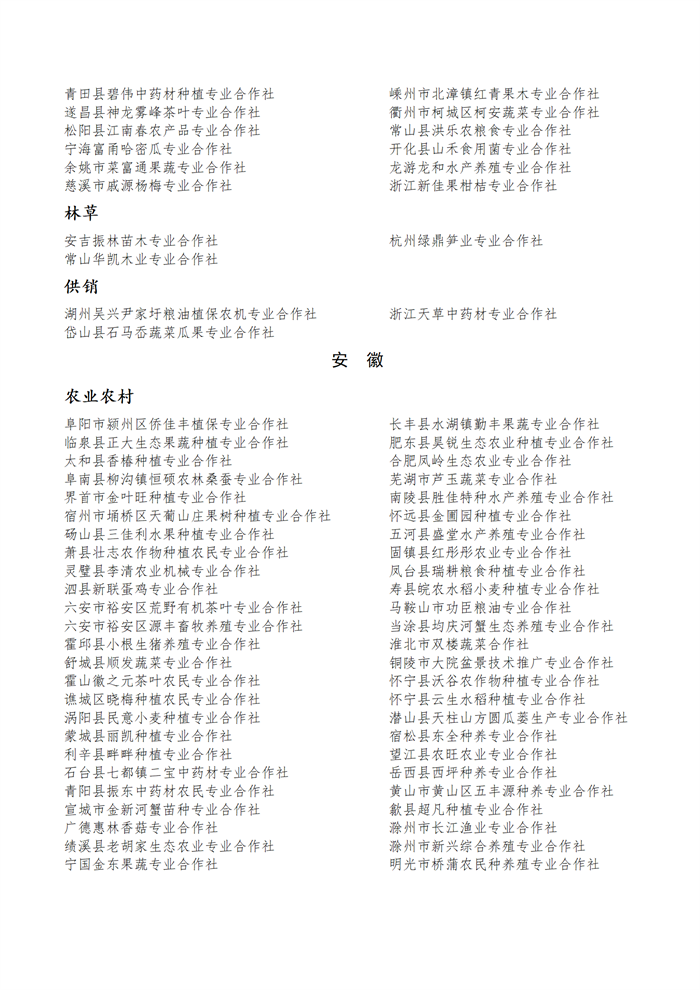 國家農(nóng)民合作社示范社公示名單.docx