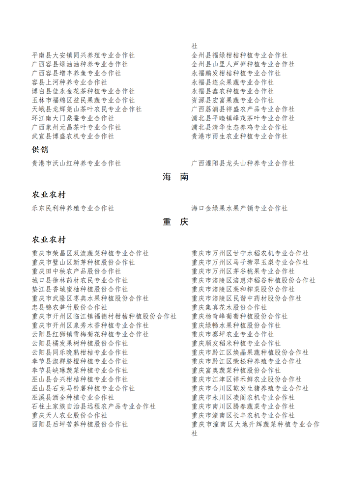 根據(jù)《國家農(nóng)民合作社示范社評定及監(jiān)測辦法》(農(nóng)經(jīng)發(fā)〔2019〕5號)有關(guān)規(guī)定,農(nóng)業(yè)農(nóng)村部會同全國農(nóng)民合作社發(fā)展部際聯(lián)席會議成員單位開展了國家農(nóng)民合作社示范社評定,現(xiàn)將名單進(jìn)行公示,公示期為2021年5月12日至5月20日,聯(lián)系電話:010—59193128。