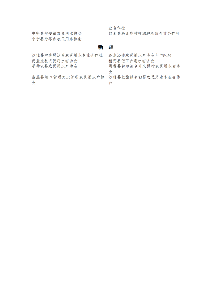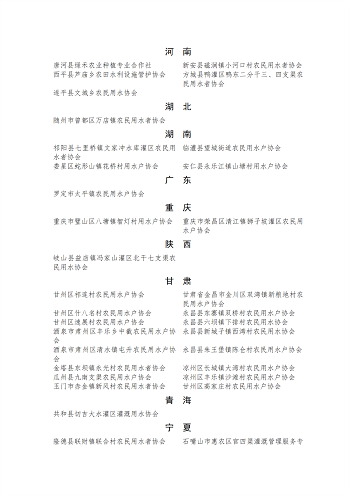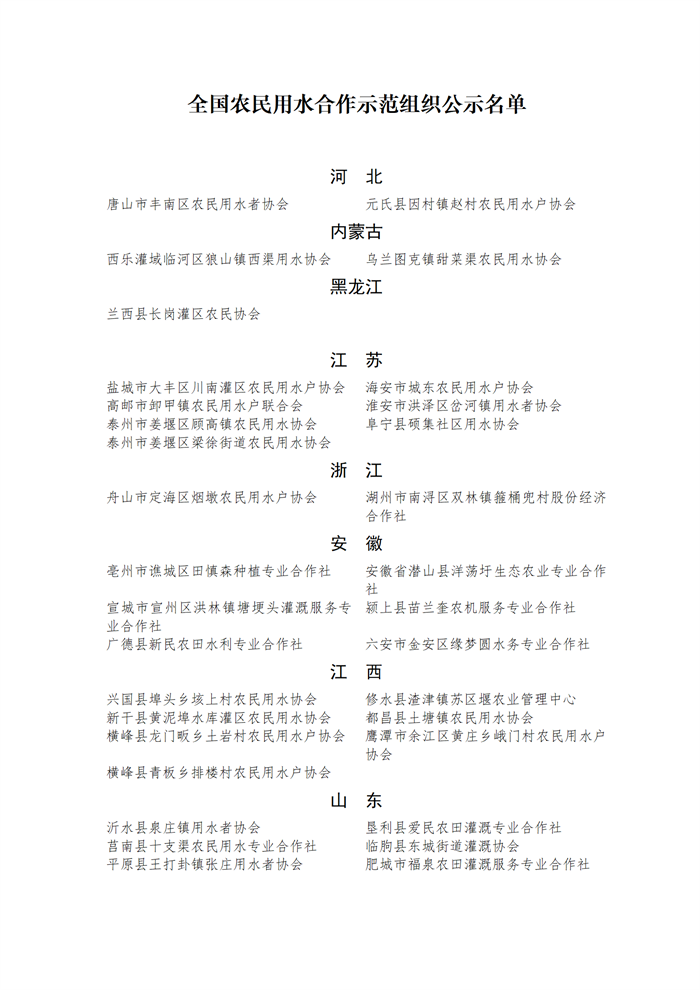 全國農(nóng)民用水合作示范組織公示名單.docx