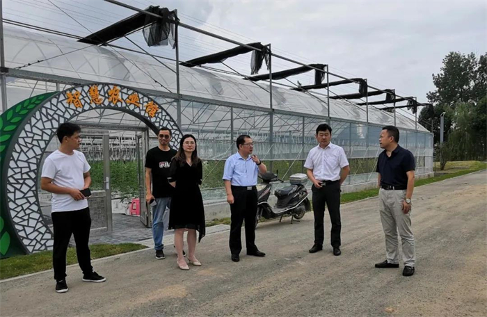 張?zhí)熘淌谝恍械桨素灾蕖澳吧匣ǘ伞笨疾煊芍修r(nóng)富通承建的“智慧農(nóng)業(yè)館”建設(shè)進(jìn)度,并作出指導(dǎo)性建議。