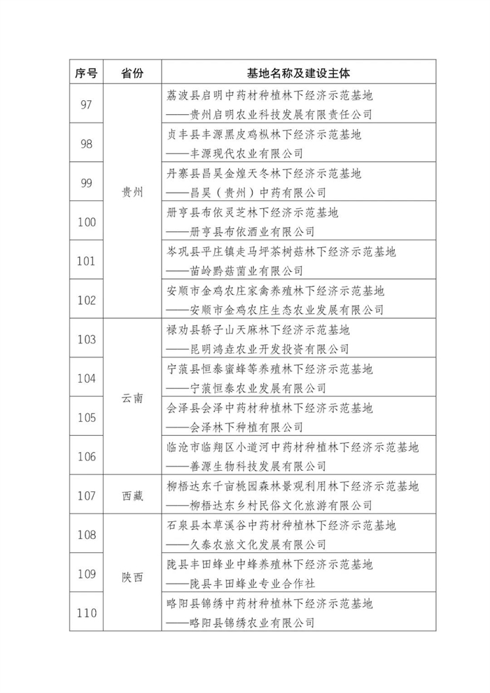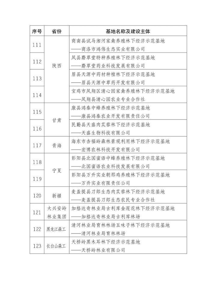 附件:第五批國家林下經(jīng)濟示范基地公示名單