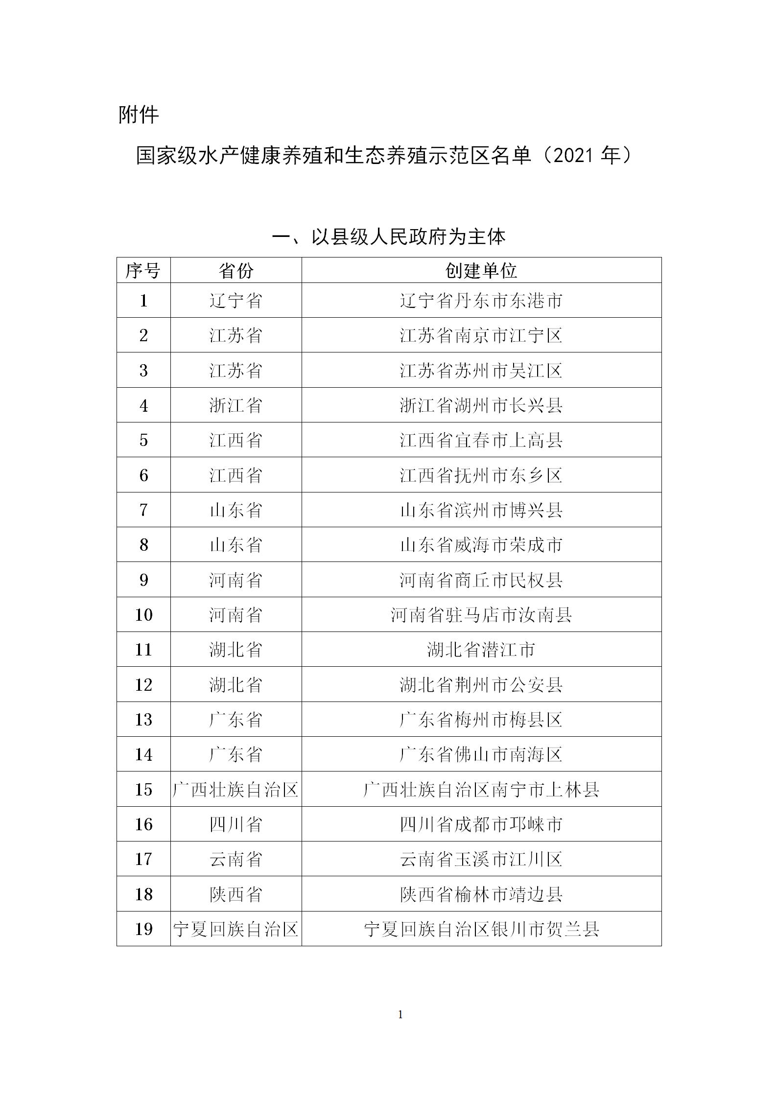 附件:國(guó)家級(jí)水產(chǎn)健康養(yǎng)殖和生態(tài)養(yǎng)殖示范區(qū)名單(2021年)