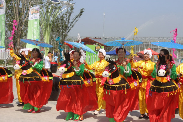 園區(qū)內(nèi)扭秧歌、跑驢等各種形式的民俗表演熱鬧非凡: