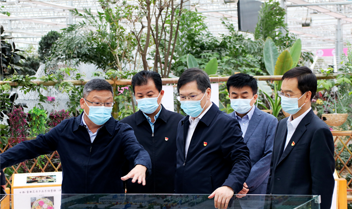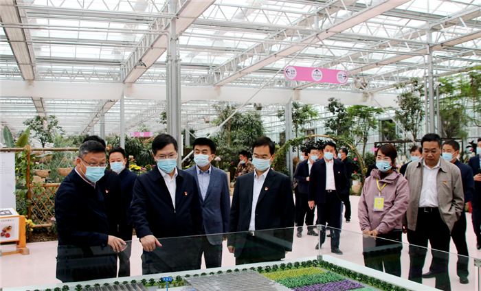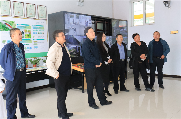 李洪亮書記一行走進中國現(xiàn)代農(nóng)業(yè)技術(shù)展示館進行實地考察,詳細了解項目規(guī)劃設計、功能結(jié)構(gòu)、運營模式等情況,并與隨行人員充分交流。朱文全詳細介紹了中農(nóng)富玉公司目前依托總公司中農(nóng)富通的資源優(yōu)勢,在當?shù)卣拇罅χС窒?,正在積極參與當?shù)厥奈逡?guī)劃、農(nóng)業(yè)工程規(guī)劃建設,圍繞產(chǎn)業(yè)發(fā)展、鄉(xiāng)村振興及休閑農(nóng)業(yè)推進工作,切實發(fā)揮“國家高新技術(shù)企業(yè)、全國新型職業(yè)農(nóng)民培育示范基地”的作用。中農(nóng)富玉公司主要業(yè)務包括溫室工程建設、園林規(guī)劃、教育培訓、休閑旅游、科普研學、種苗銷售、農(nóng)業(yè)技術(shù)服務等,并對當?shù)匕l(fā)展發(fā)揮著重要的作用。