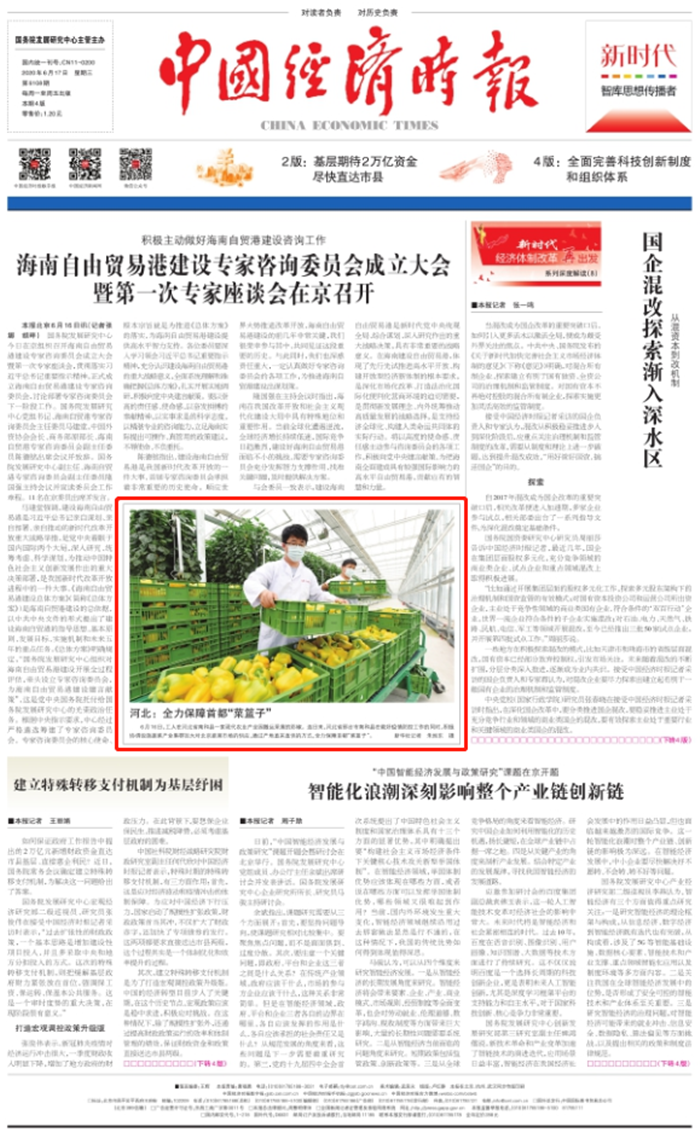 中國經(jīng)濟時報頭版刊發(fā)——河北:全力保障首都“菜籃子”