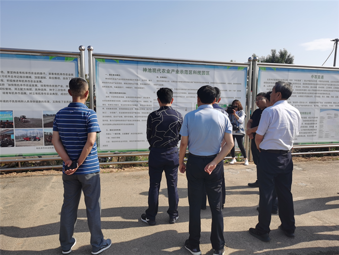 ▼6月18日上午,山西省農(nóng)業(yè)機械發(fā)展中心王進仁主任一行到中農(nóng)富通分支機構(gòu)——山西中農(nóng)富神高原作物農(nóng)業(yè)研究有限公司(以下簡稱中農(nóng)富神)基地調(diào)研。公司總經(jīng)理姚宇升對各位領(lǐng)導的蒞臨表示熱烈歡迎,并全程陪同接待。