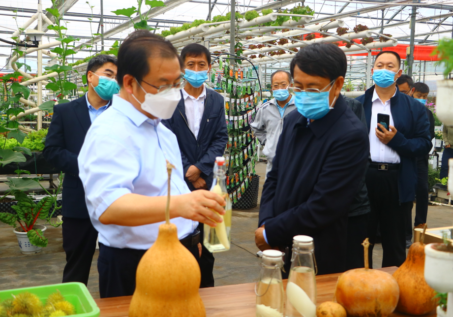 ▼5月11日上午,由山東省政法委綜治督導(dǎo)處、省派萊山區(qū)鄉(xiāng)村振興服務(wù)隊、閭坊文旅集團、山東工商學(xué)院的領(lǐng)導(dǎo)一行七人組成的考察團一行前往中農(nóng)富通位于北京通州的示范基地——北京國際都市農(nóng)業(yè)科技園參觀考察??疾靾F先后參觀了園區(qū)農(nóng)業(yè)科技展示區(qū)、設(shè)施果蔬高效種植區(qū),水科技和生態(tài)循環(huán)農(nóng)業(yè)展示區(qū),通過實地參觀、聽取介紹的方式,詳細了解了科技園經(jīng)營理念與運營情況,雙方就感興趣的問題展開了熱烈的討論。北京國際都市農(nóng)業(yè)科技園副總經(jīng)理甑卞女士陪同參觀。