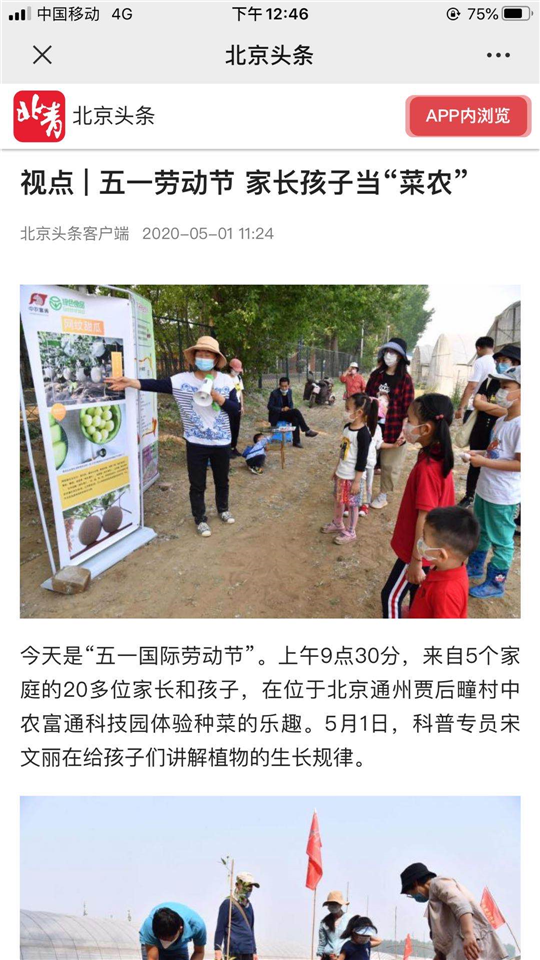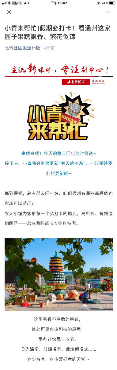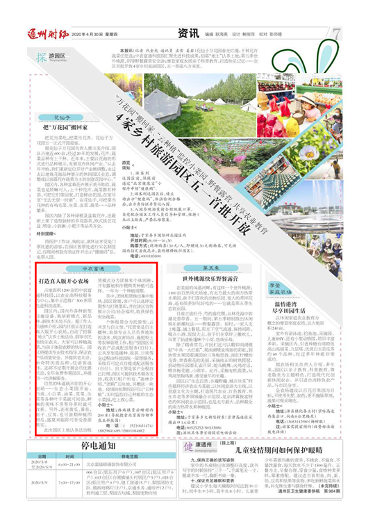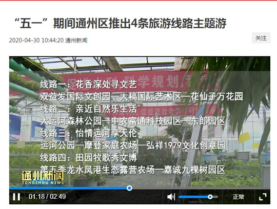 ▼五一前后,北京廣播電視報(bào)和通州時(shí)訊、通州新聞、北京頭條、北青社區(qū)報(bào)通州版微信公眾號(hào)等媒體報(bào)道北京國(guó)際都市農(nóng)業(yè)科技園。