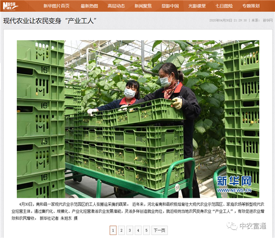 ▼4月30日,新華網(wǎng)報(bào)道中國(guó)南和設(shè)施農(nóng)業(yè)產(chǎn)業(yè)集群。 近年來(lái),河北省南和縣積極培育壯大現(xiàn)代農(nóng)業(yè)示范園區(qū)、家庭農(nóng)場(chǎng)等新型現(xiàn)代農(nóng)業(yè)經(jīng)營(yíng)主體,通過(guò)集約化、規(guī)?;?、產(chǎn)業(yè)化經(jīng)營(yíng)激活農(nóng)業(yè)發(fā)展?jié)撃?,靈活多樣創(chuàng)造就業(yè)崗位,就近吸納當(dāng)?shù)剞r(nóng)民變身農(nóng)業(yè)“產(chǎn)業(yè)工人”,有效促進(jìn)農(nóng)業(yè)增效和農(nóng)民增收。新華社記者 朱旭東 攝