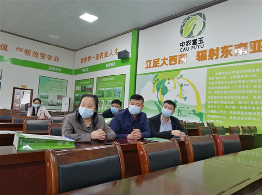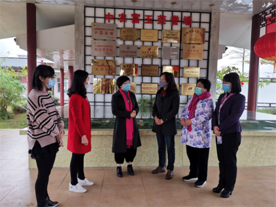 玉林市市婦聯(lián)黨組書記羅小潔(圖右三)到中農(nóng)富玉調(diào)研