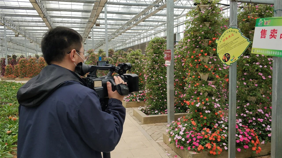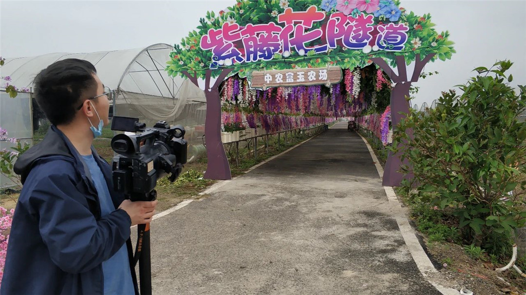 ▲廣西玉林電視臺(tái)報(bào)道五彩田園農(nóng)業(yè)嘉年華開園情況,正在錄制視頻
