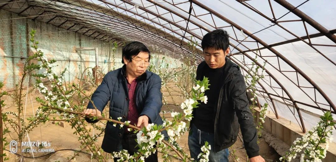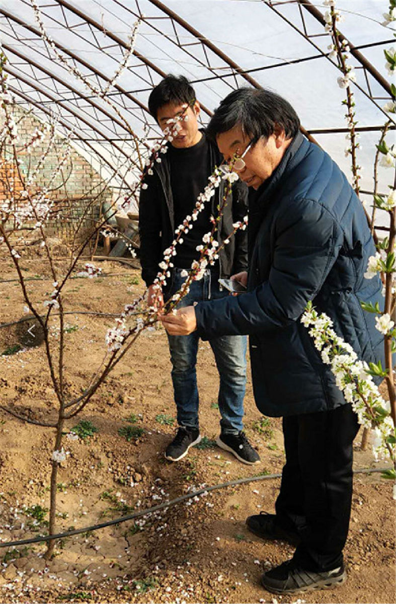 山西省農(nóng)業(yè)科學(xué)院園藝研究所王保明研究員到基地指導(dǎo)櫻桃樹的花期管理技術(shù)