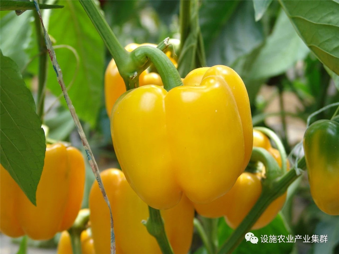 陽光透過大棚照在這鮮紅、嫩黃的番茄和彩椒上,令人賞心悅目。