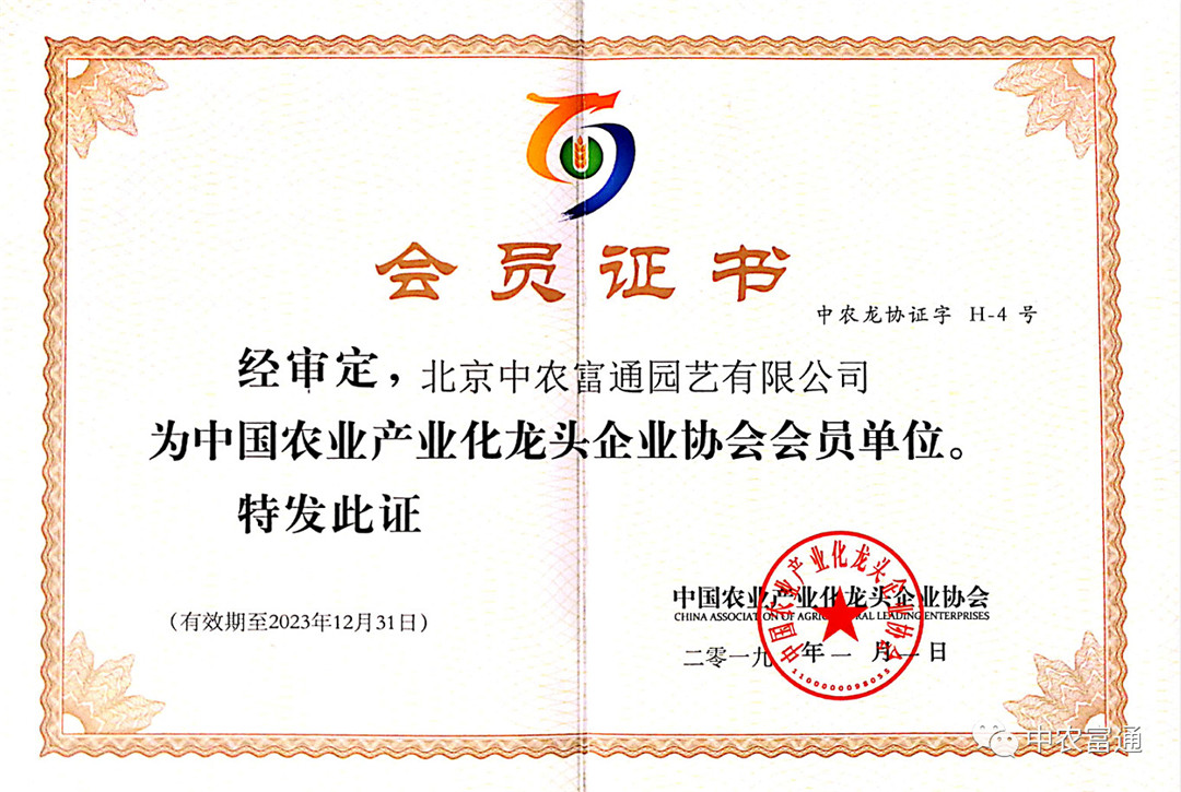 中農(nóng)富通已持續(xù)11年為國家高新技術(shù)企業(yè);在成為北京市農(nóng)業(yè)產(chǎn)業(yè)化龍頭企業(yè)5年后,2019年,中農(nóng)富通成功當(dāng)選為中國農(nóng)業(yè)產(chǎn)業(yè)化龍頭企業(yè)協(xié)會(huì)會(huì)員;繼北京、廣西玉林分支機(jī)構(gòu)之后,河北邢臺(tái)分支機(jī)構(gòu)成功獲得市級(jí)農(nóng)業(yè)產(chǎn)業(yè)化重點(diǎn)龍頭企業(yè)認(rèn)定,并榮獲“國家科技中小企業(yè)”;北京兩家分支機(jī)構(gòu)雙雙入選北京市設(shè)計(jì)創(chuàng)新中心,旗下6家分支機(jī)構(gòu)順利通過高新技術(shù)企業(yè)認(rèn)定或復(fù)審。