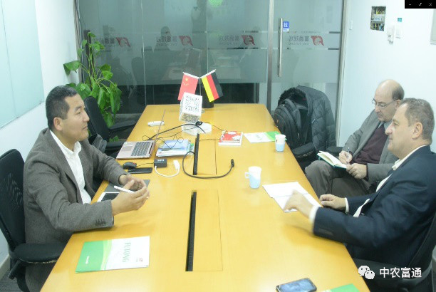 2019年11月06日,德國駐華使館農(nóng)業(yè)參贊Axel Wildner與中德農(nóng)業(yè)合作中心執(zhí)行主任Dr. Jurgen Ritter拜訪中農(nóng)富通。