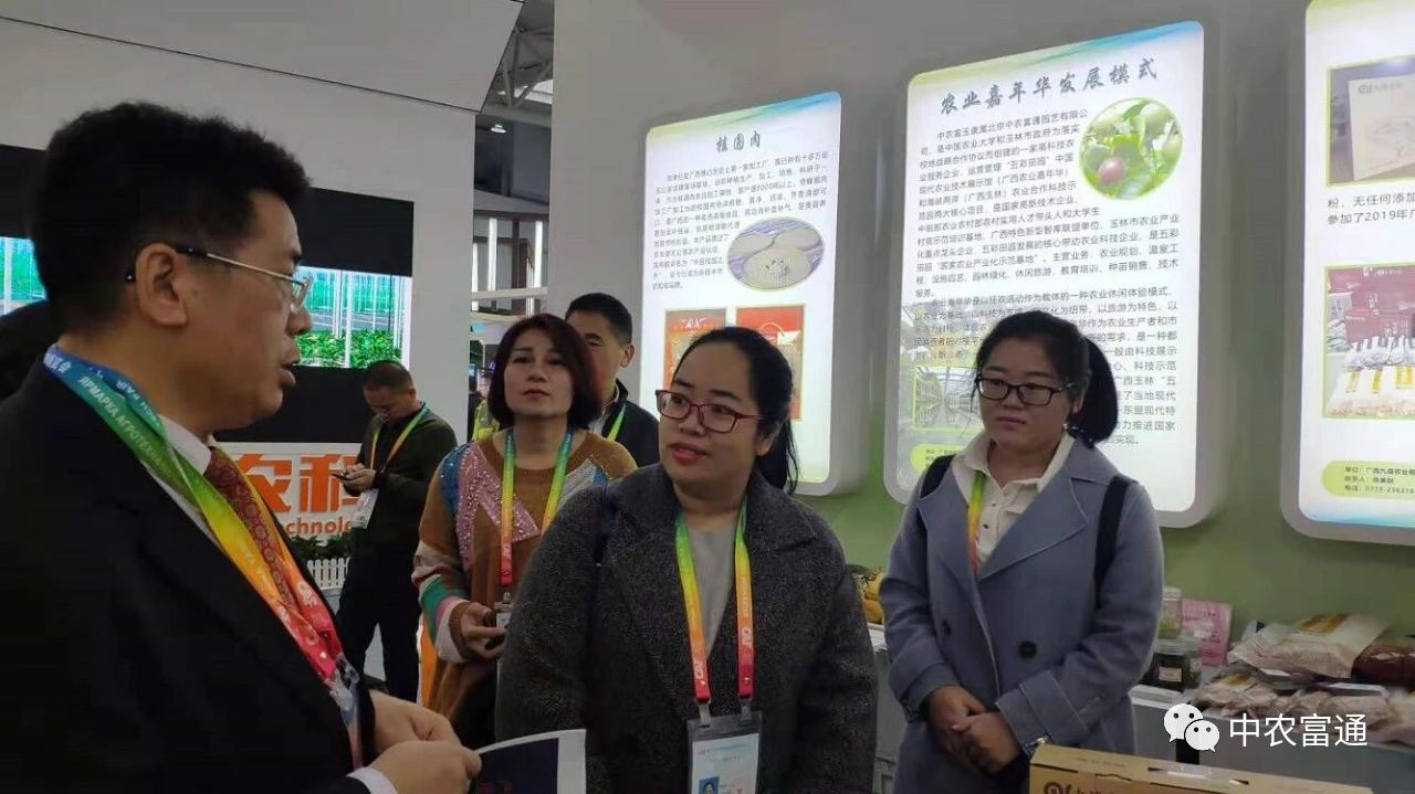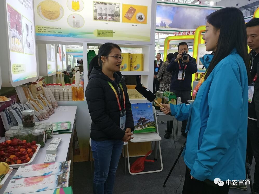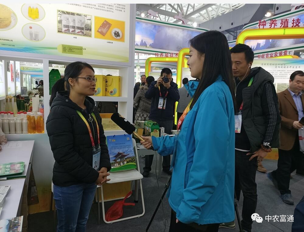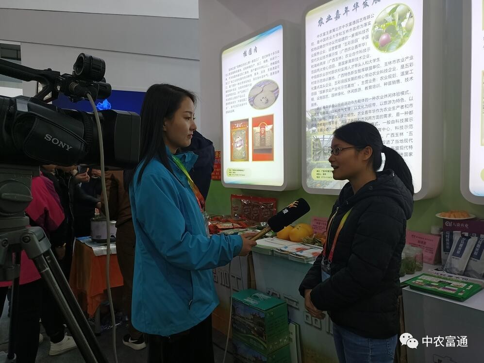 ▼10月22日-26日,廣西中農富玉國際農業(yè)科技有限公司參加第二十六屆楊凌農高會,廣西自治區(qū)科技廳陳處長到展位指導工作,中農富玉工作人員進行積極推薦,并接受楊凌電視臺采訪。
