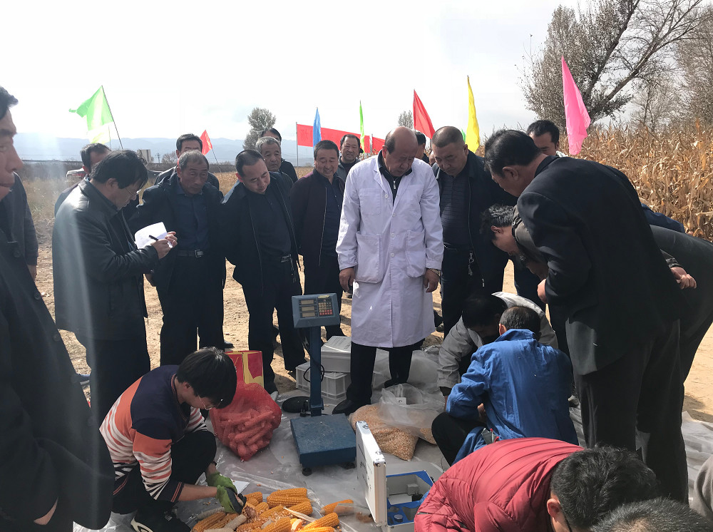 ▼10月22日,山西中農富神高原作物農業(yè)研究有限公司組織了玉米片區(qū)的測產工作,在王富榮教授的帶領下,依據農業(yè)農村部玉米專家指導組和全國玉米栽培學組制定的《關于玉米高產、超高產田間測產驗收方法和標準》進行實收,實收測產結果為平均每畝實收籽粒重803.04公斤,籽粒含水率為26.98%,折合標準籽粒含水量14%后實收畝產為698.81公斤。相比村民種植的玉米,富神公司采用的深松整地技術種植的玉米產量要高出很多。