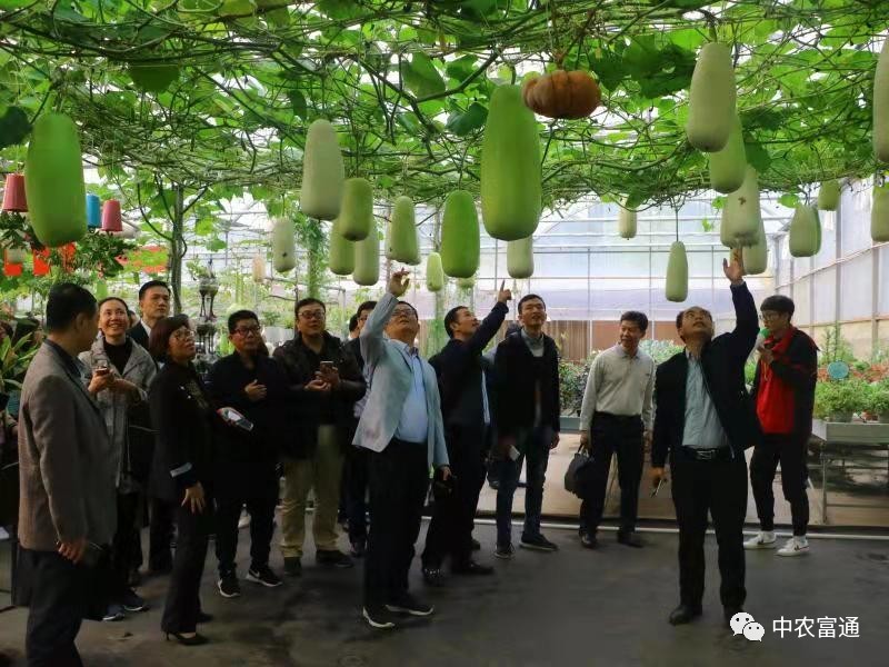 ▼10月19日,中國人民大學(xué)繼續(xù)教育學(xué)院一行40人到中農(nóng)富通示范基地——北京國際都市農(nóng)業(yè)科技園參觀考察,對科技園現(xiàn)代農(nóng)業(yè)發(fā)展模式、新技術(shù)、新奇特瓜果等大加贊賞。