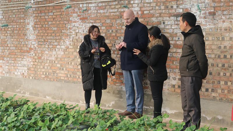 英國貝爾法斯特女王大學的Christopher Elliott教授是一名食品安全與檢測方面的專家教授。在了解南和現代設施農業產業集群基本情況后,教授詳細詢問了產業集群番茄、黃瓜的種植情況,并進行了產品品嘗。其后, Christopher Elliott教授一行參觀考察了南和農業嘉年華,并在草莓采摘區進行了草莓品鑒。