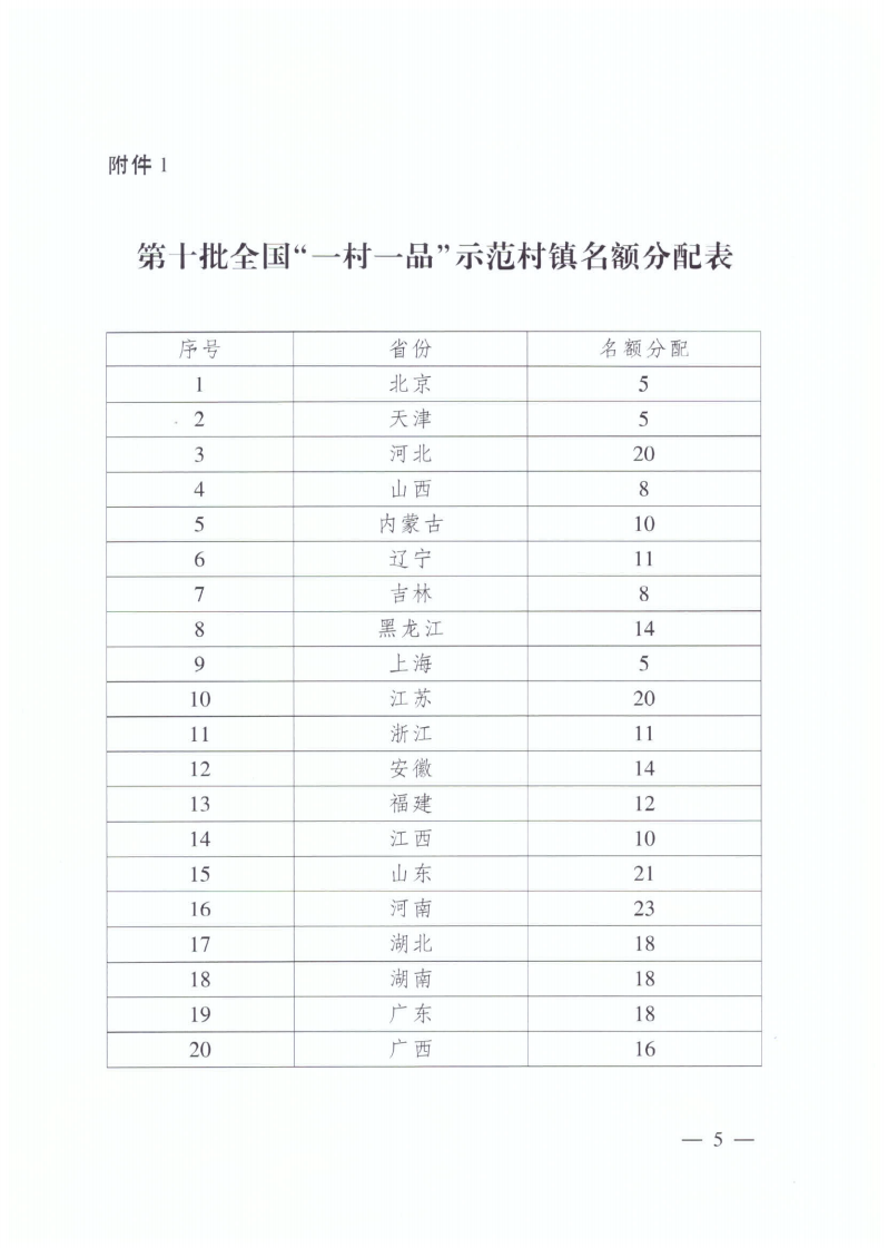 附件:1.第十批全國“一村一品”示范村鎮(zhèn)名額分配表