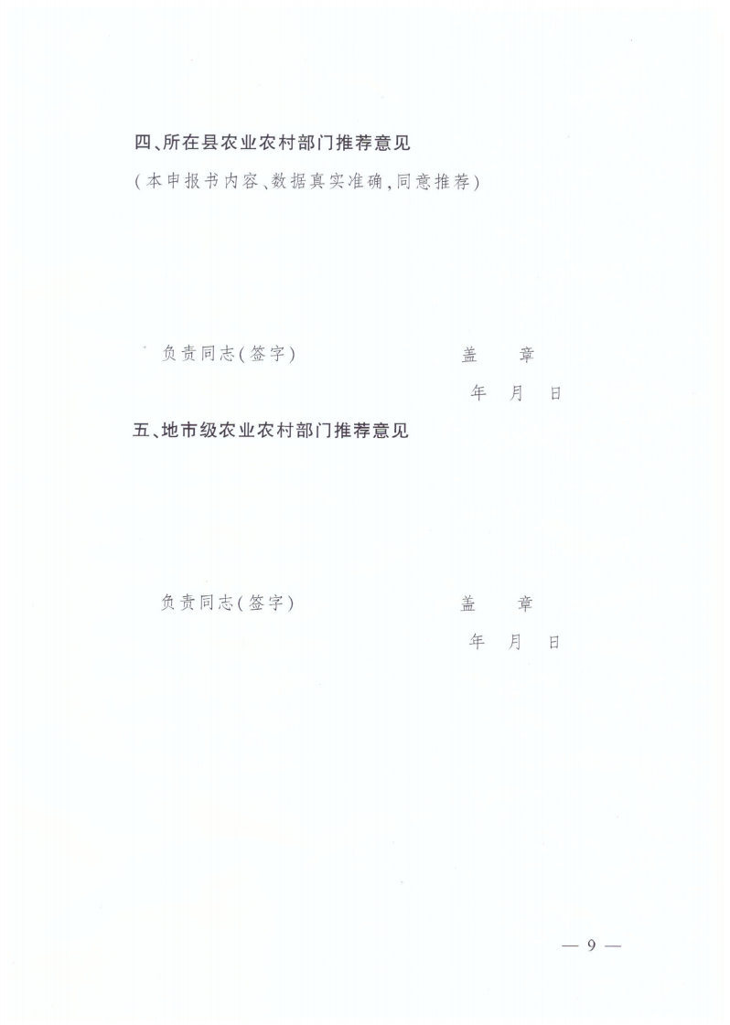 (一)村鎮(zhèn)申報。對照申報條件,填寫《第十批全國“一村一品”示范村鎮(zhèn)申報書》(見附件2),向縣級農(nóng)業(yè)農(nóng)村部門提出申請,并附有關證明材料。