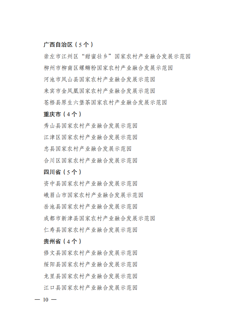 ??為深入貫徹落實(shí)近年來中央一號文件精神,充分發(fā)揮示范引領(lǐng)作用,促進(jìn)農(nóng)村一二三產(chǎn)業(yè)融合發(fā)展,根據(jù)《國家農(nóng)村產(chǎn)業(yè)融合發(fā)展示范園認(rèn)定管理辦法(試行)》,在省級推薦、第三方評審的基礎(chǔ)上,認(rèn)定北京市密云區(qū)巨各莊鎮(zhèn)蔡家洼村農(nóng)村產(chǎn)業(yè)融合發(fā)展示范園等100個(gè)單位為第二批國家農(nóng)村產(chǎn)業(yè)融合發(fā)展示范園(以下簡稱“示范園”)?,F(xiàn)將示范園名單(見附件)予以公布,并就有關(guān)事項(xiàng)通知如下:
