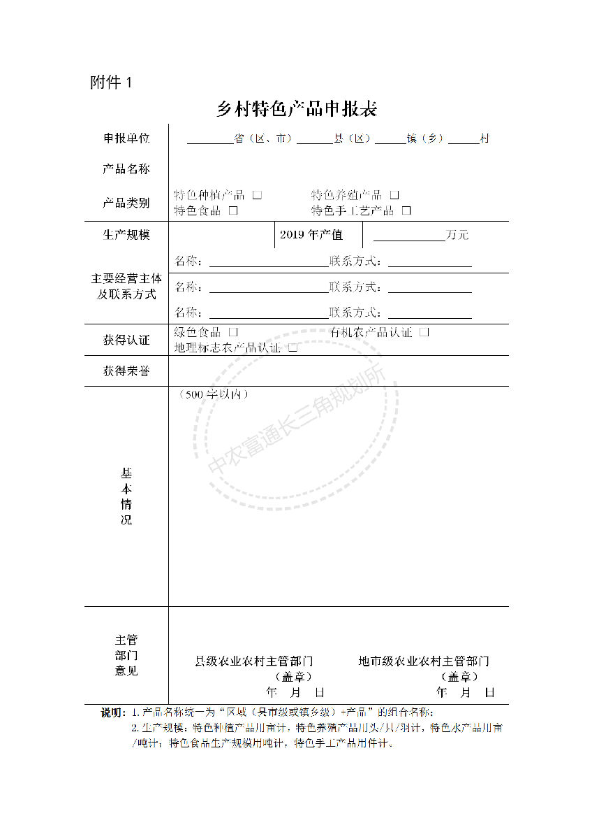 1.鄉(xiāng)村特色產品申報表
