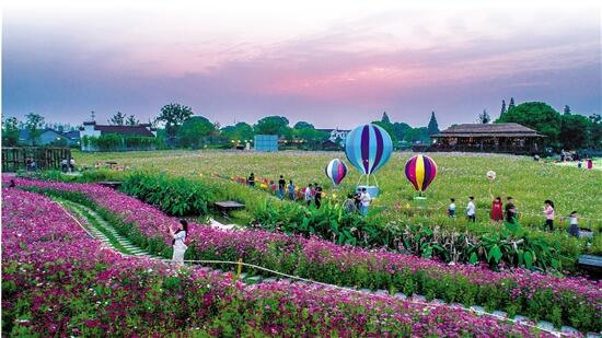 湖州鄉(xiāng)村旅游發(fā)展如火如荼。圖為南潯區(qū)石淙鎮(zhèn)田園花海。 通訊員 沈勇強 攝